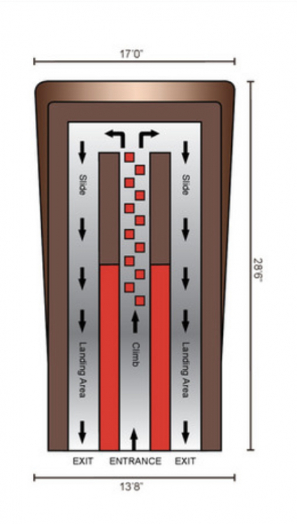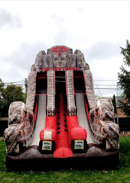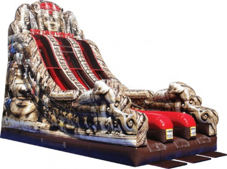 This thrilling 22 foot Raiders of the Lost Temple Slide will have your guests lining up for their next ride. Two people can race against each other to the bottom of this dry slide.